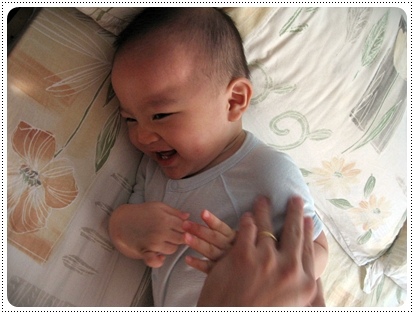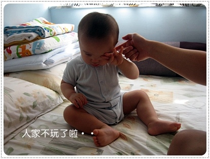 在家陪北鼻玩的時候,我們都會盡量跟他講很多的話,發現他都會發出聲音來回應,模仿能力及觀察力也變得很強,現在聽到掰掰便會舉起手,手掌會一抓一放像是在跟人掰掰。把東西藏起來時,已經會憑印象找出來了,所以拖鞋都藏不住啦orz...
